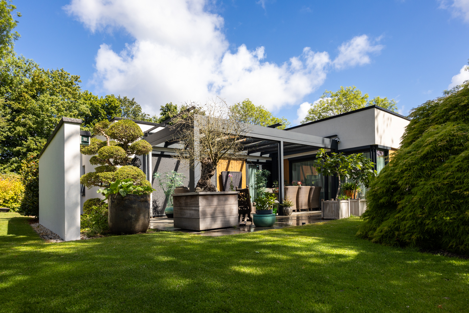 Wij hebben een Pallazzo Sqope veranda in Balk gemonteerd. Met deze prachtige veranda kunnen de bewoners optimaal genieten van het buitenleven. In deze woning is er ook HR++ glas gemonteerd, enkele ramen met Screenline. Het voorportaal is voorzien van een glazen luifel met OBUK paneel.